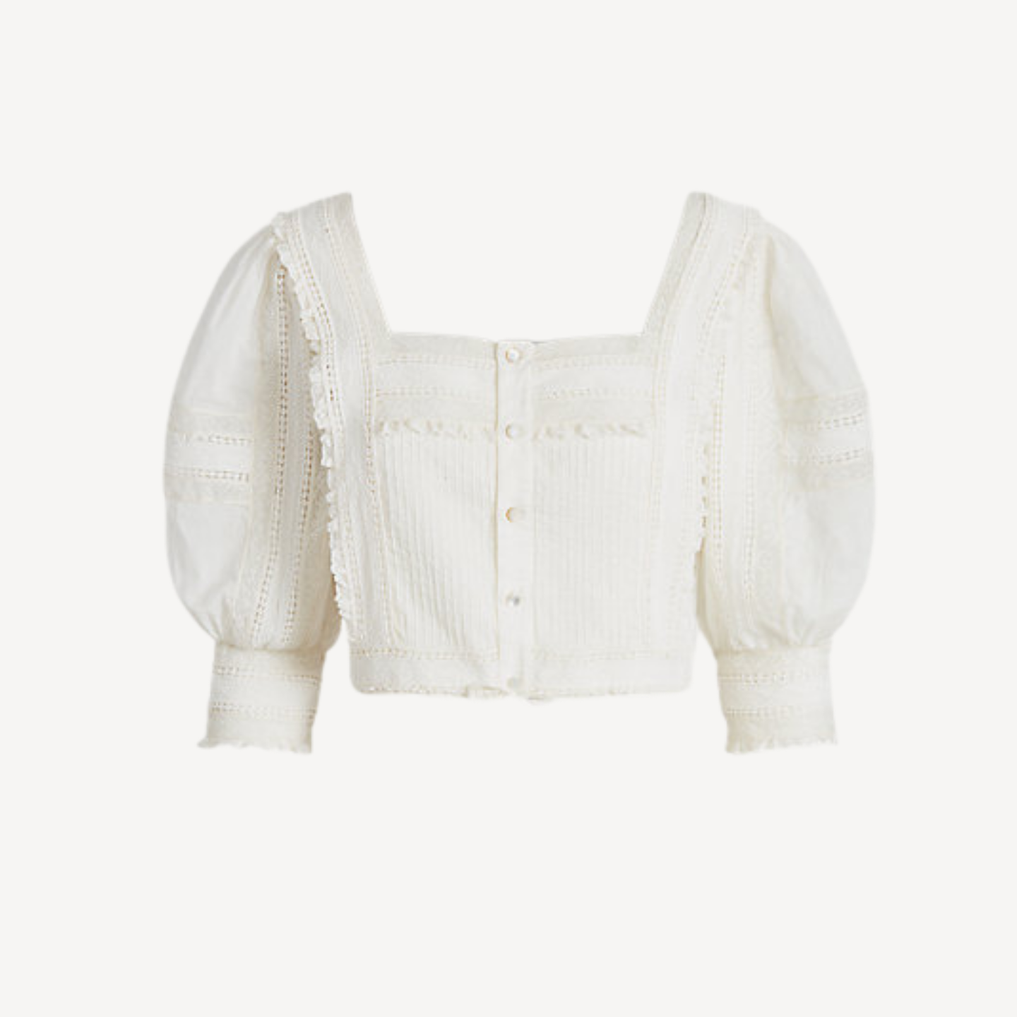 The quintessential romantic style staple is a puffy-sleeve blouse. Often either chiffon or silk. You might see this type of look with a pussy- bow tie or a collared neckline and styled with a skirt or high-waisted classic trousers.
